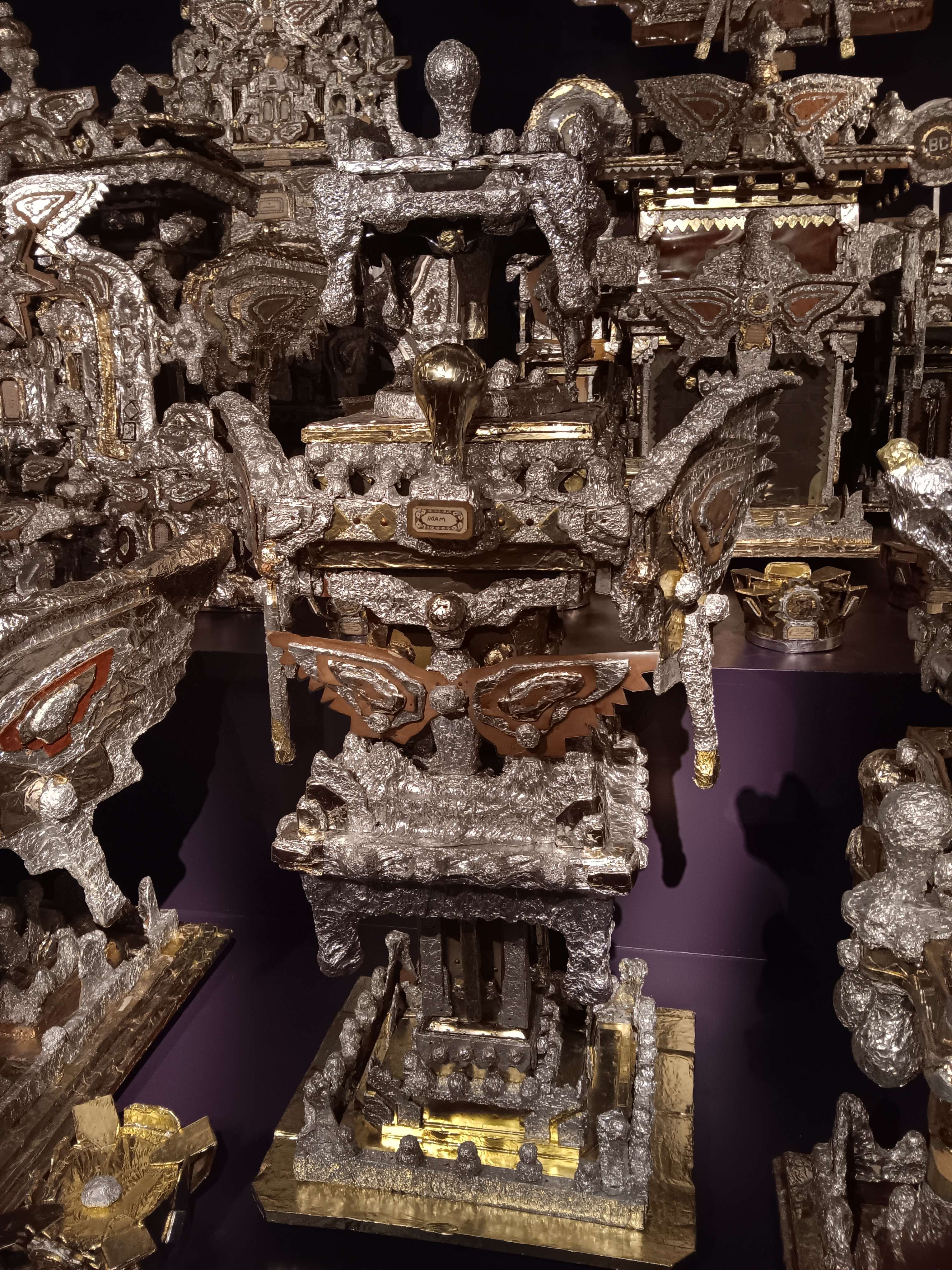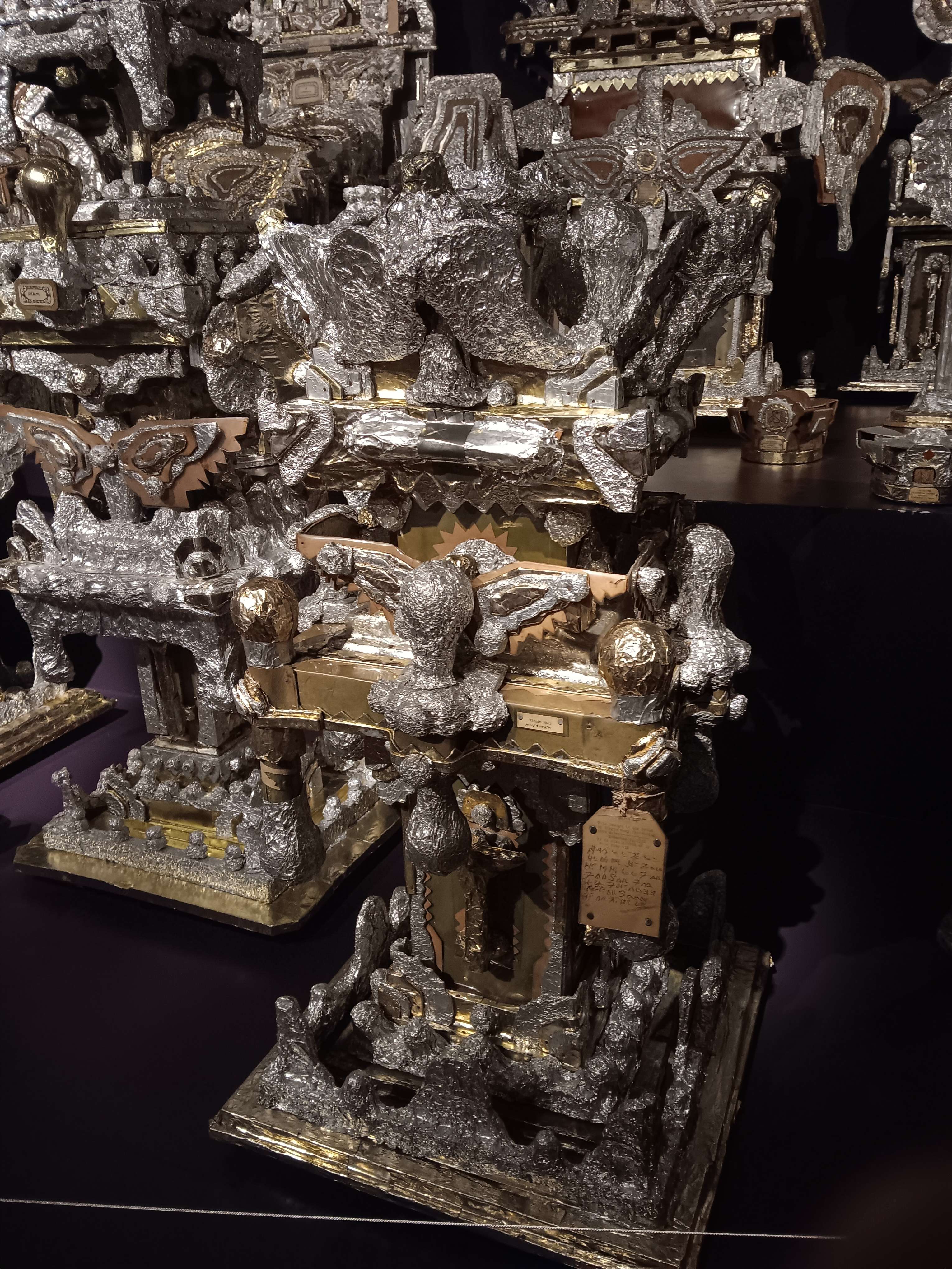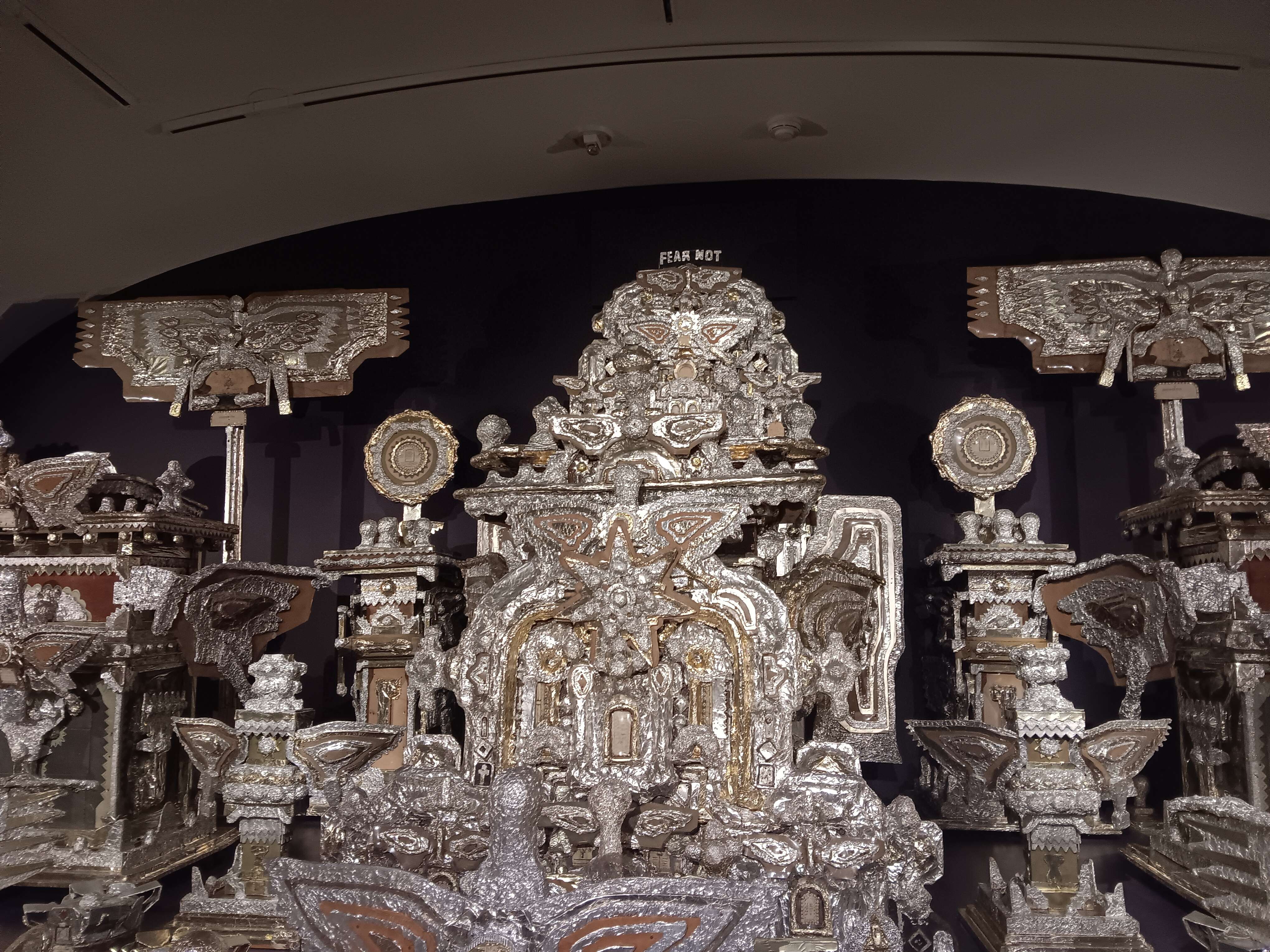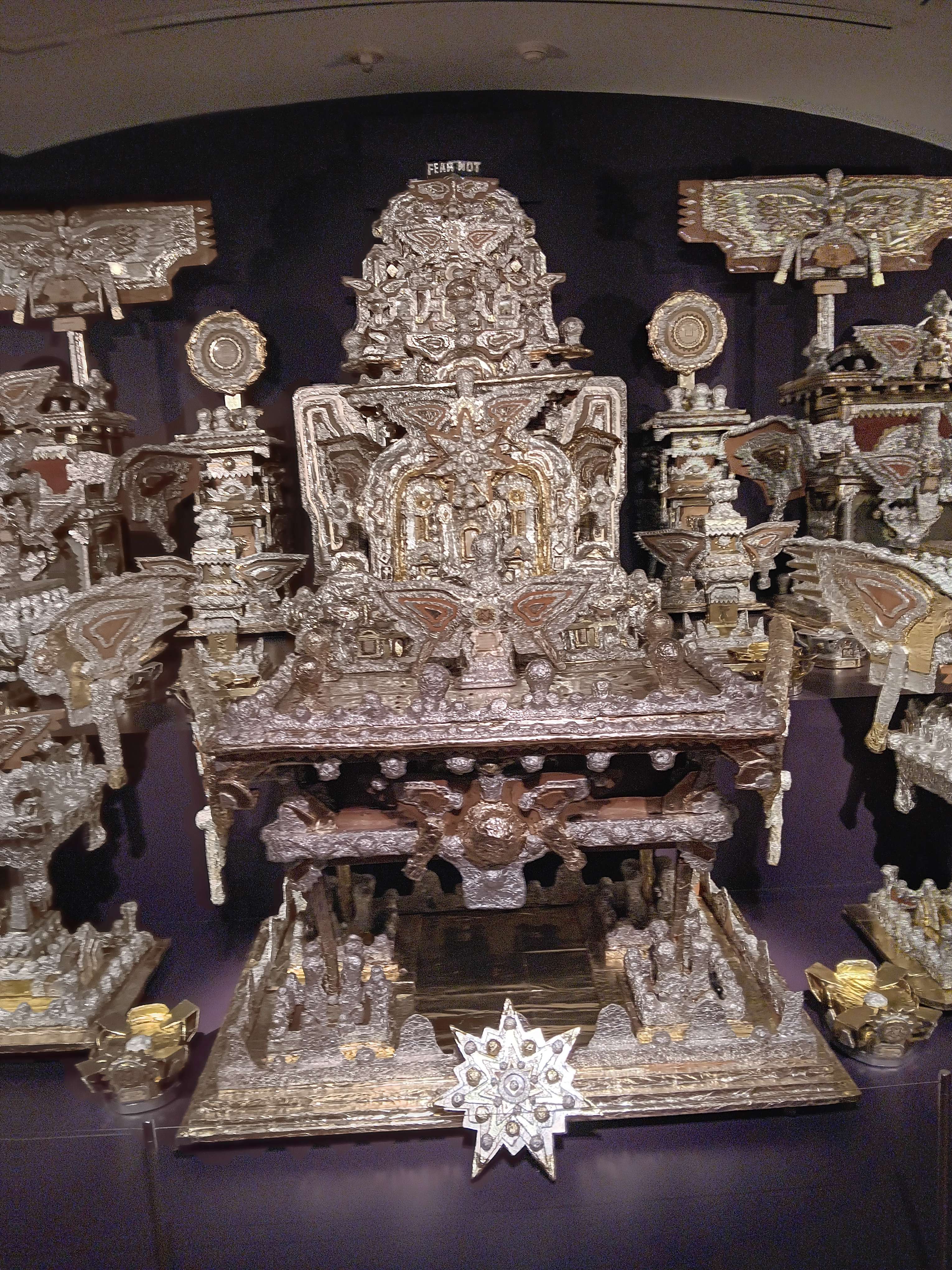 The Throne of the Third Heaven of the Nations' Millennium General Assembly is a piece of "outsider art" or "visionary art" made by the Black custodian St. James Hampton, who lived in Washington DC, out of cardboard, aluminum foil, gold foil, and found objects over the course of 14 years following a series of religious visions. It was one of the things I was most anticipating for the visit to DC, and seeing it in person was practically a religious experience, I couldn't take my eyes off of it. If you want a video about him and his art, this video is pretty good! My pictures just don't do it justice. What almost does do it justice, however, are these very blurry photos that evoke a certain feeling in me when I look back at them: